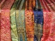 Traumhafter großer Seidenschal in Grün mit Orange und Weiss